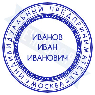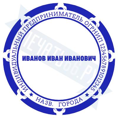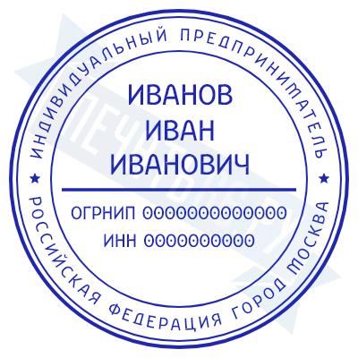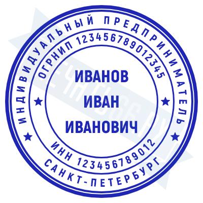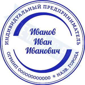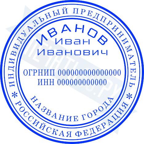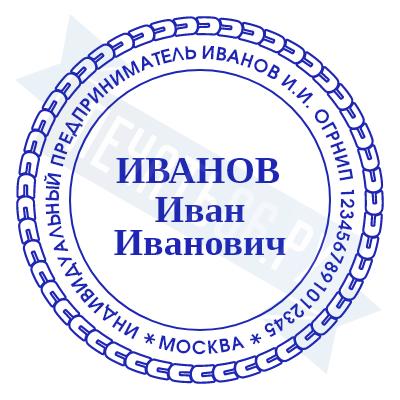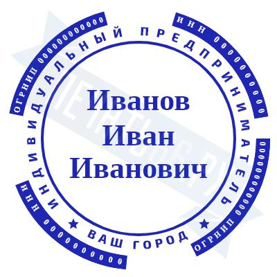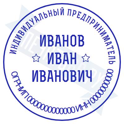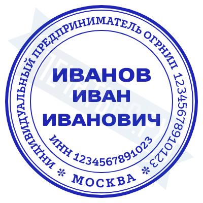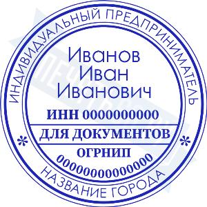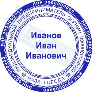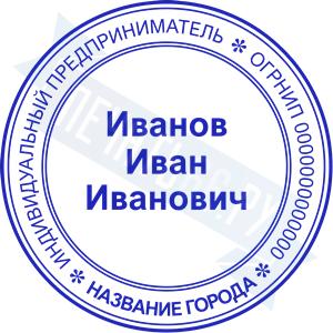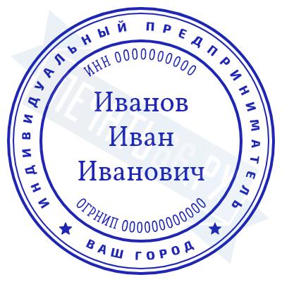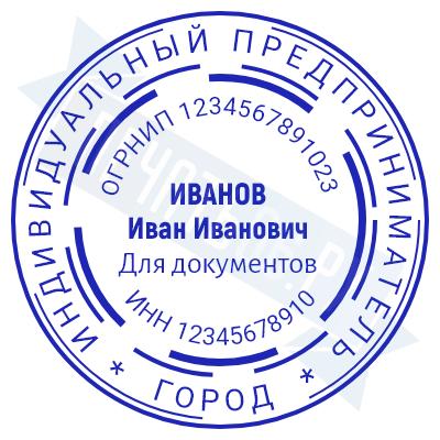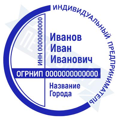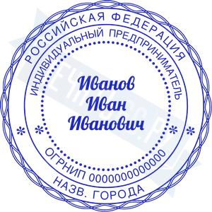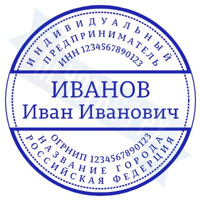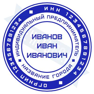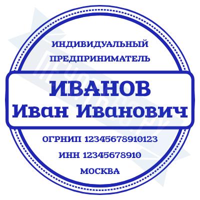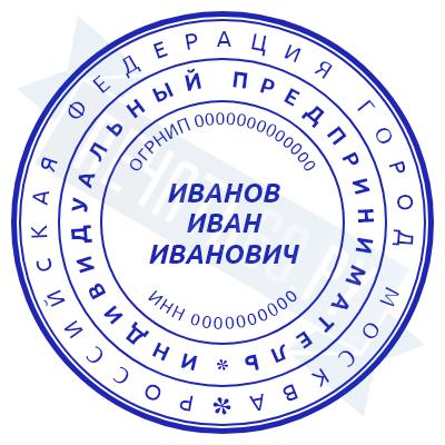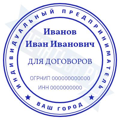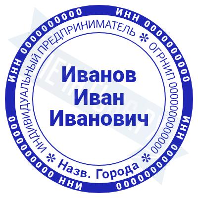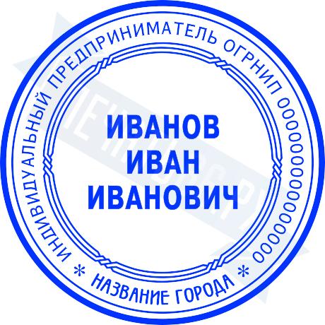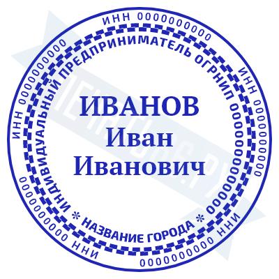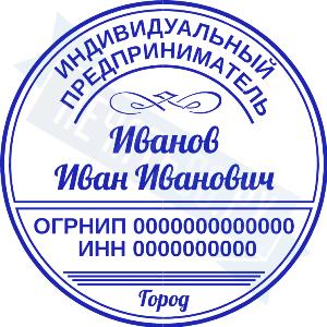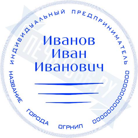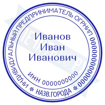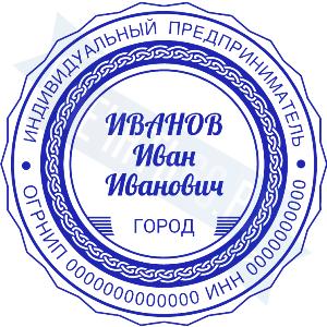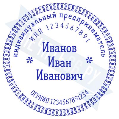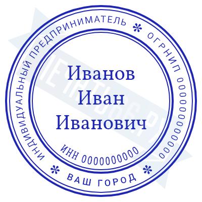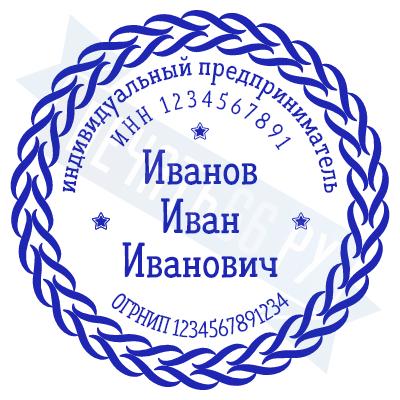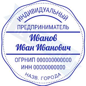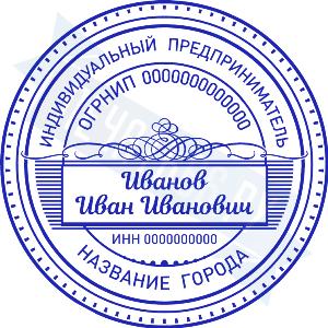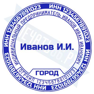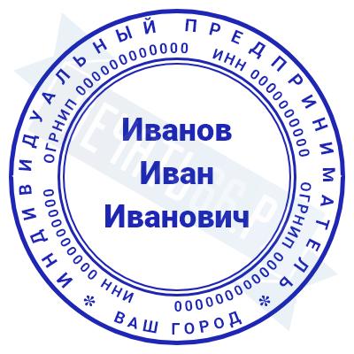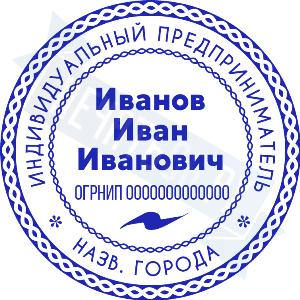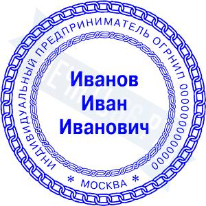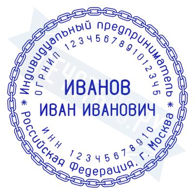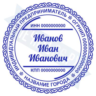 - Печать ИП стандартная на металлической оснастке Сабина диаметром 42 мм с кнопкой и встроенной подушкой по цене 3048 рублей и еще 68 видов стандартных печатей