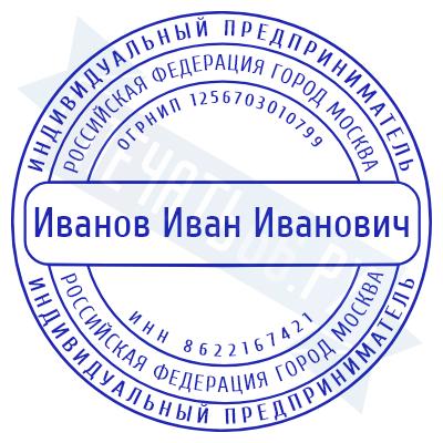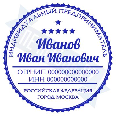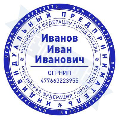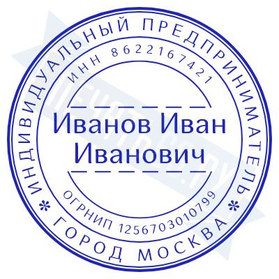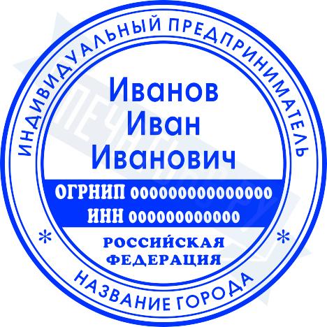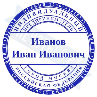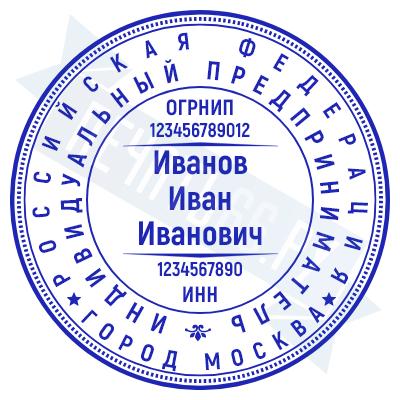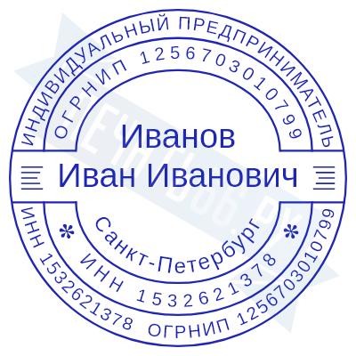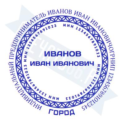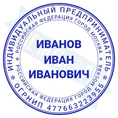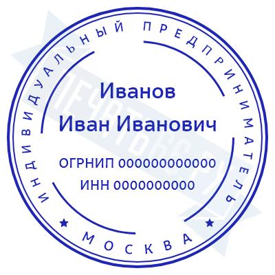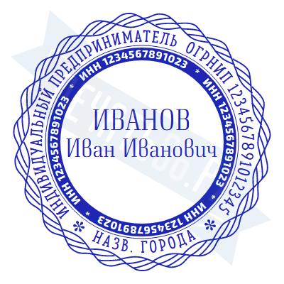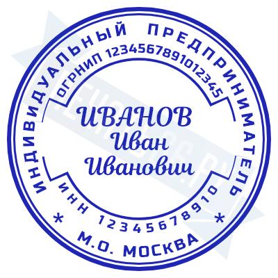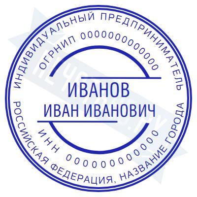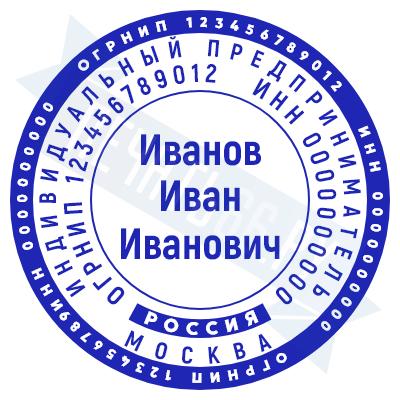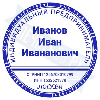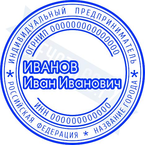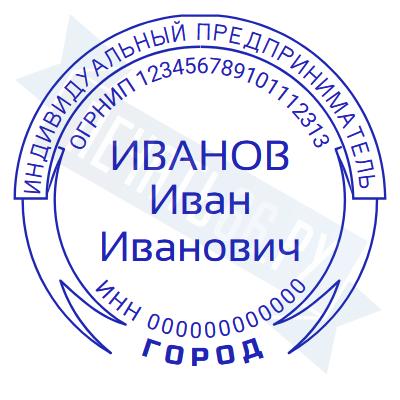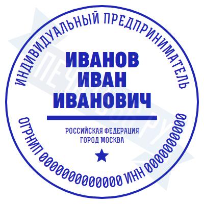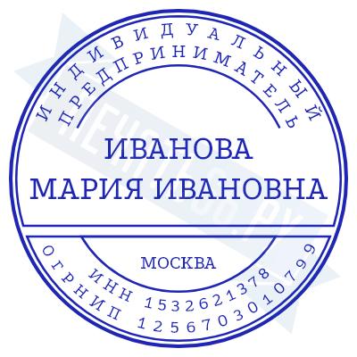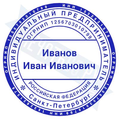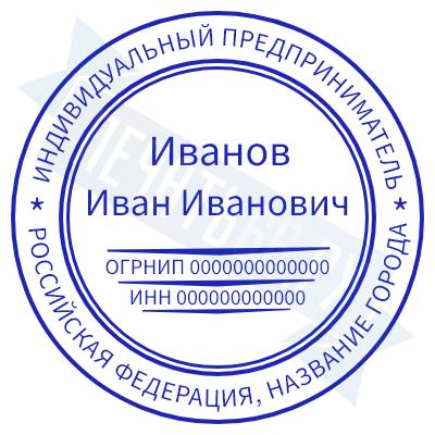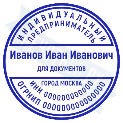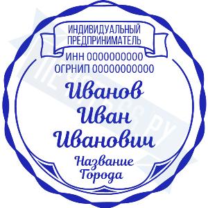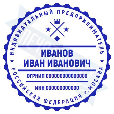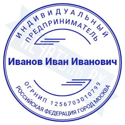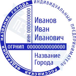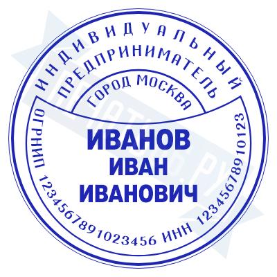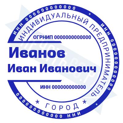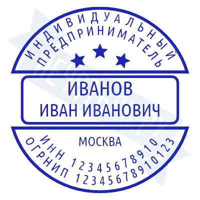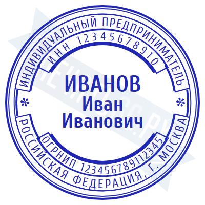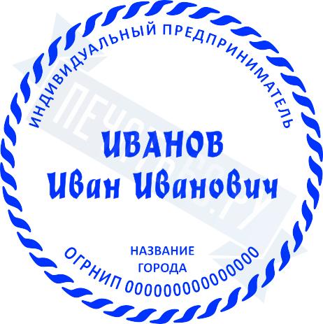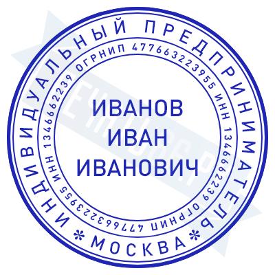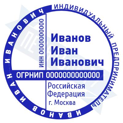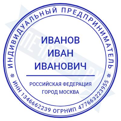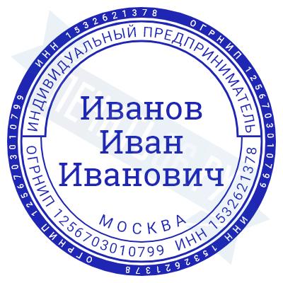 - Печать ИП стандартная на металлической оснастке Сабина диаметром 42 мм с кнопкой и встроенной подушкой по цене 3048 рублей и еще 68 видов стандартных печатей
