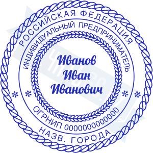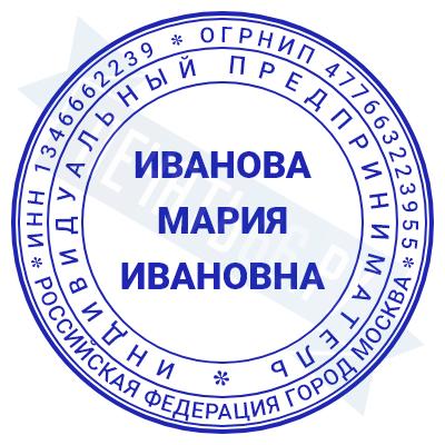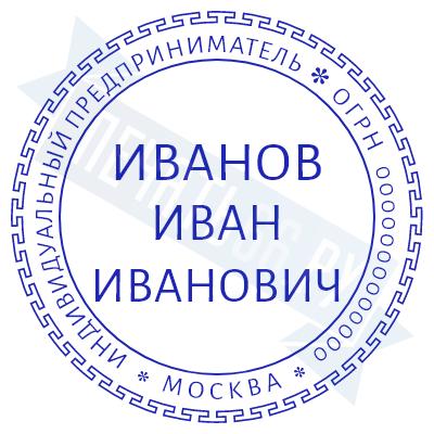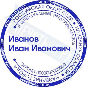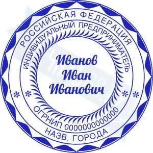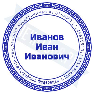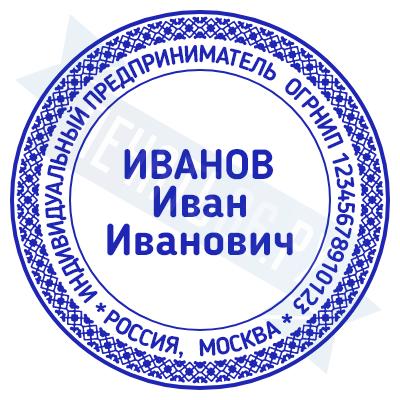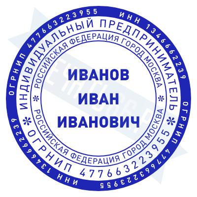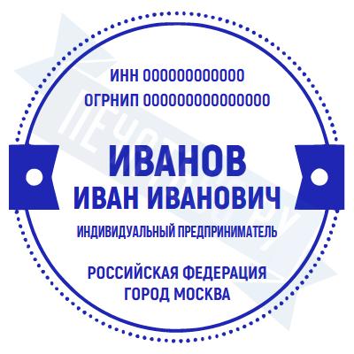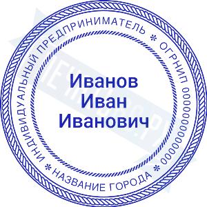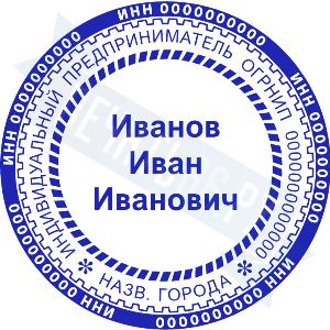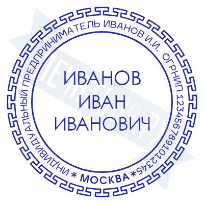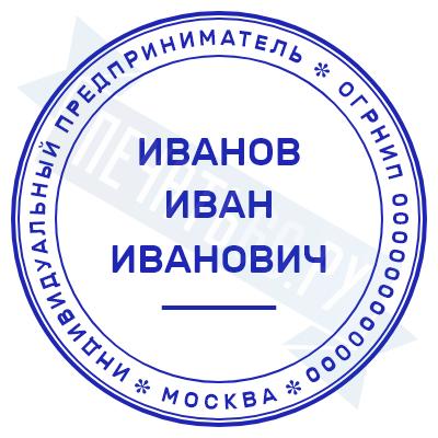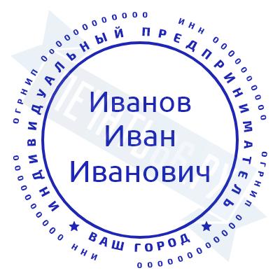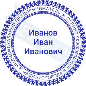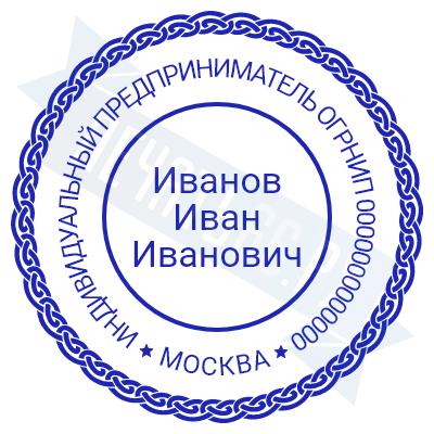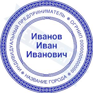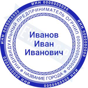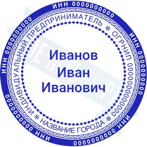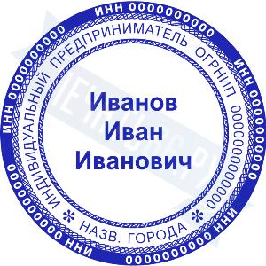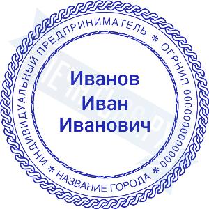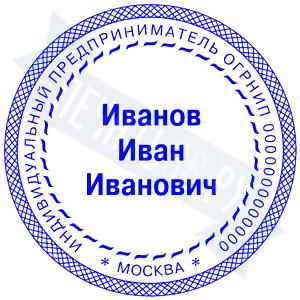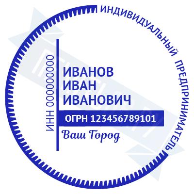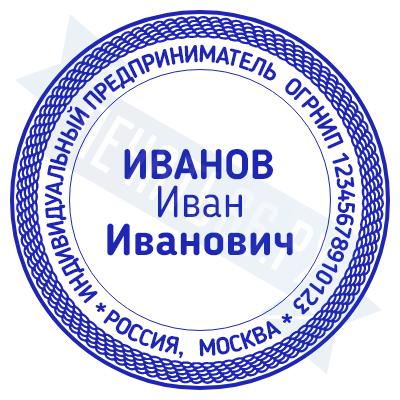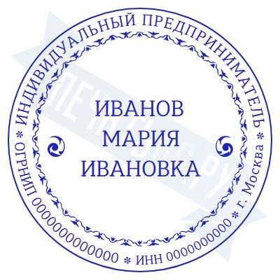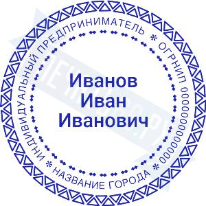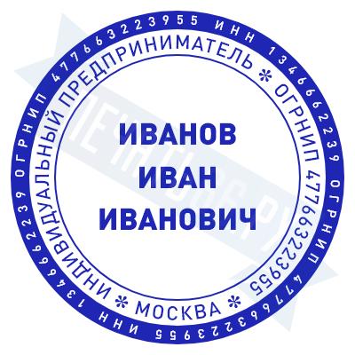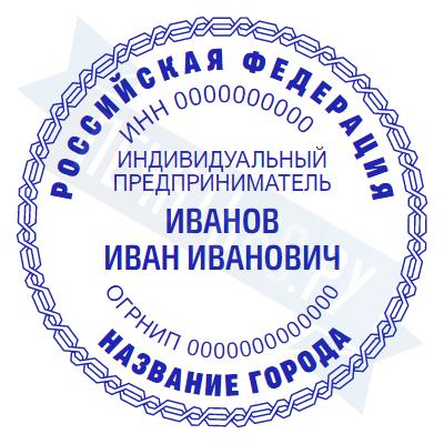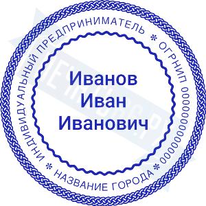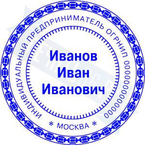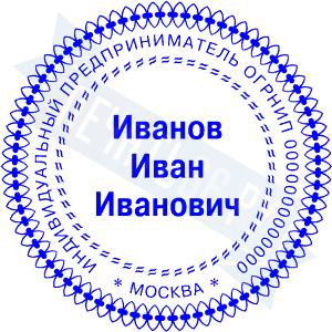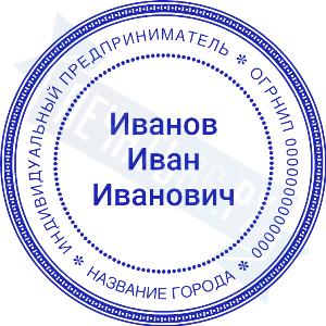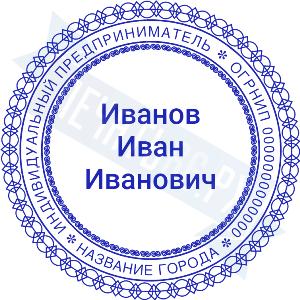 Печать ИП стандартная на металлической оснастке Сабина диаметром 42 мм с кнопкой и встроенной подушкой