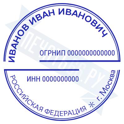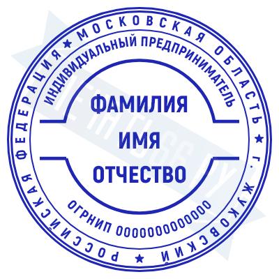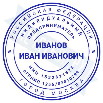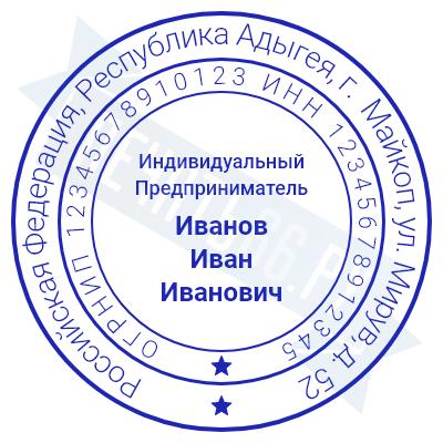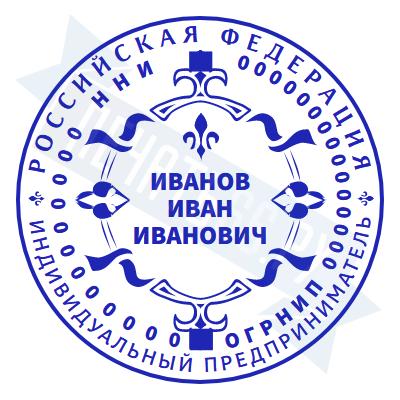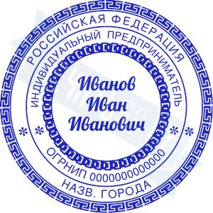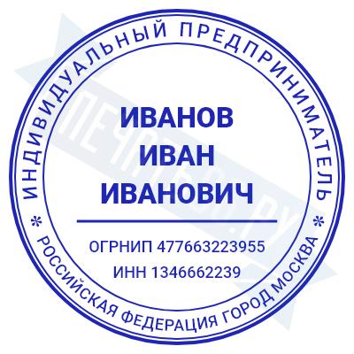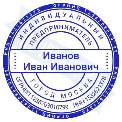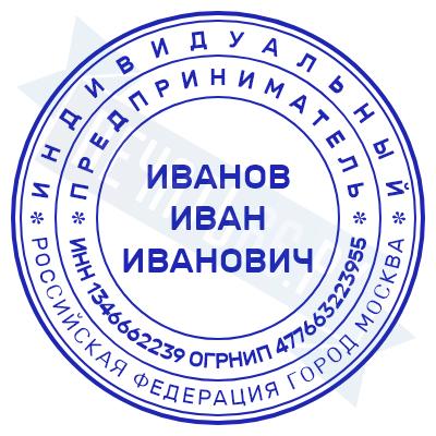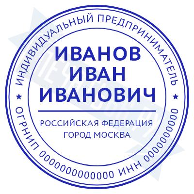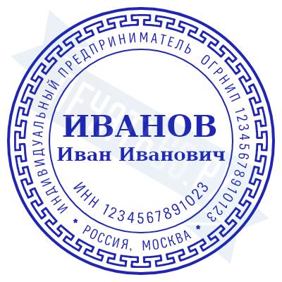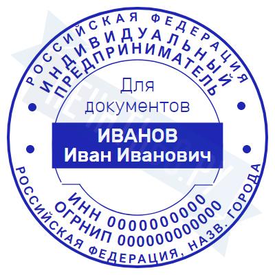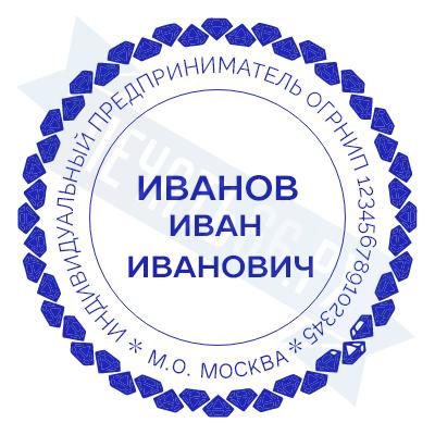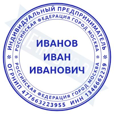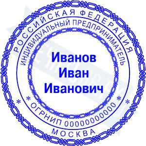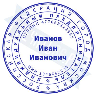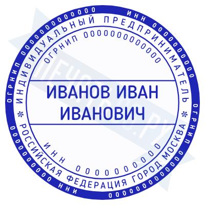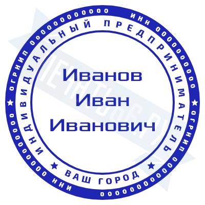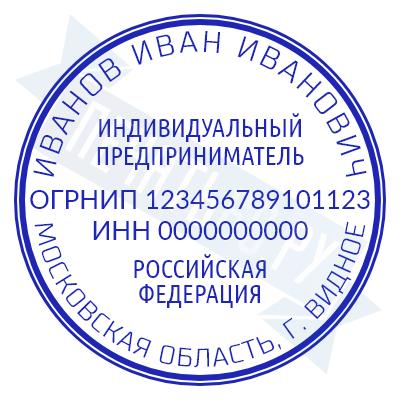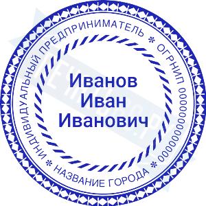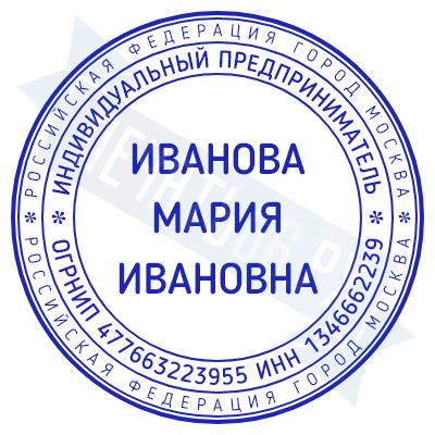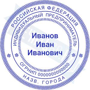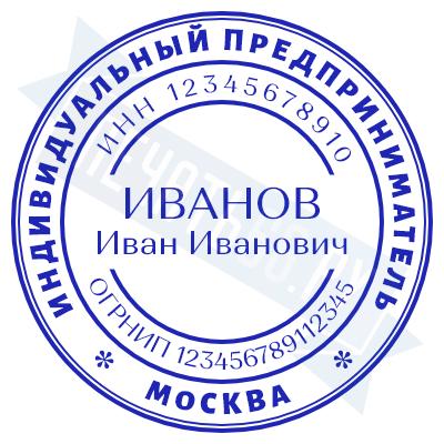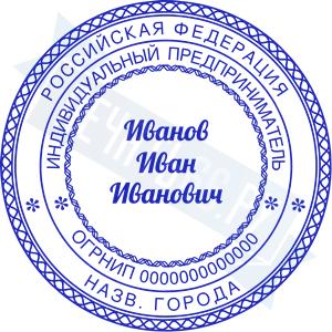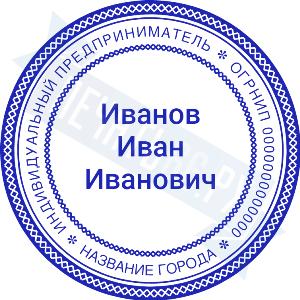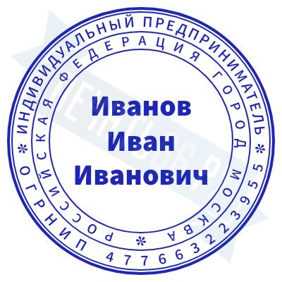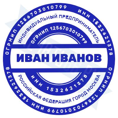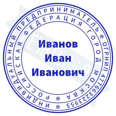 Печать ИП стандартная на металлической оснастке Сабина диаметром 42 мм с кнопкой и встроенной подушкой